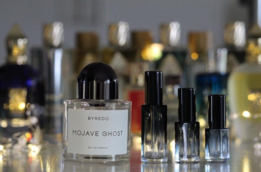 Description: Mojave Ghost is a woody, floral composition inspired by the soulful beauty of the Mojave Desert and the resilient "Ghost Flower" (Mohavea confertiflora) that blossoms in its arid, baked ground. The fragrance is celebrated for its ethereal, light, and almost translucent character. It opens with a unique, creamy fruitiness—often described as having a "pear-like" quality—before transitioning into a powdery floral heart. The dry-down is warm and skin-like, making it a popular "clean" or "minimalist" scent that is sophisticated without being loud.